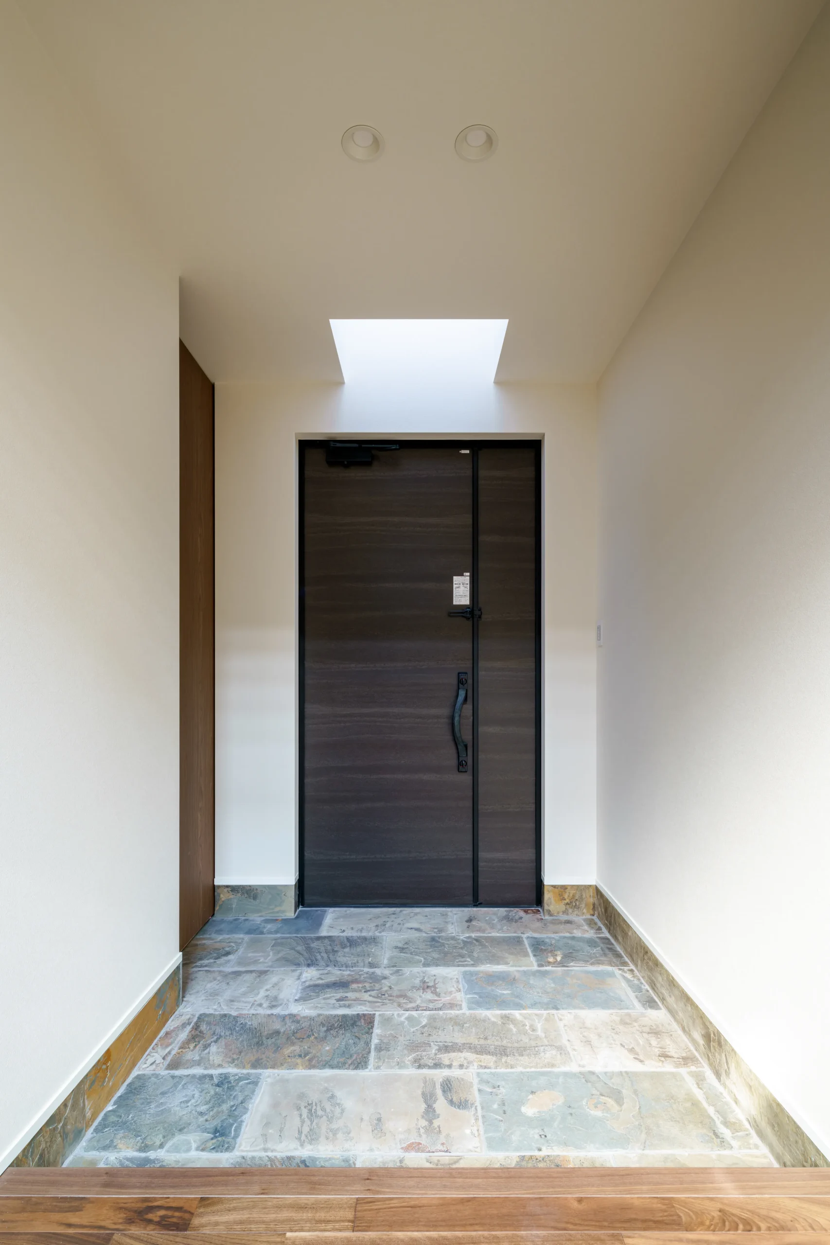 玄関ホールの一部を吹き抜けにし、上部からの柔らかい自然光を落とす設計も可能です。