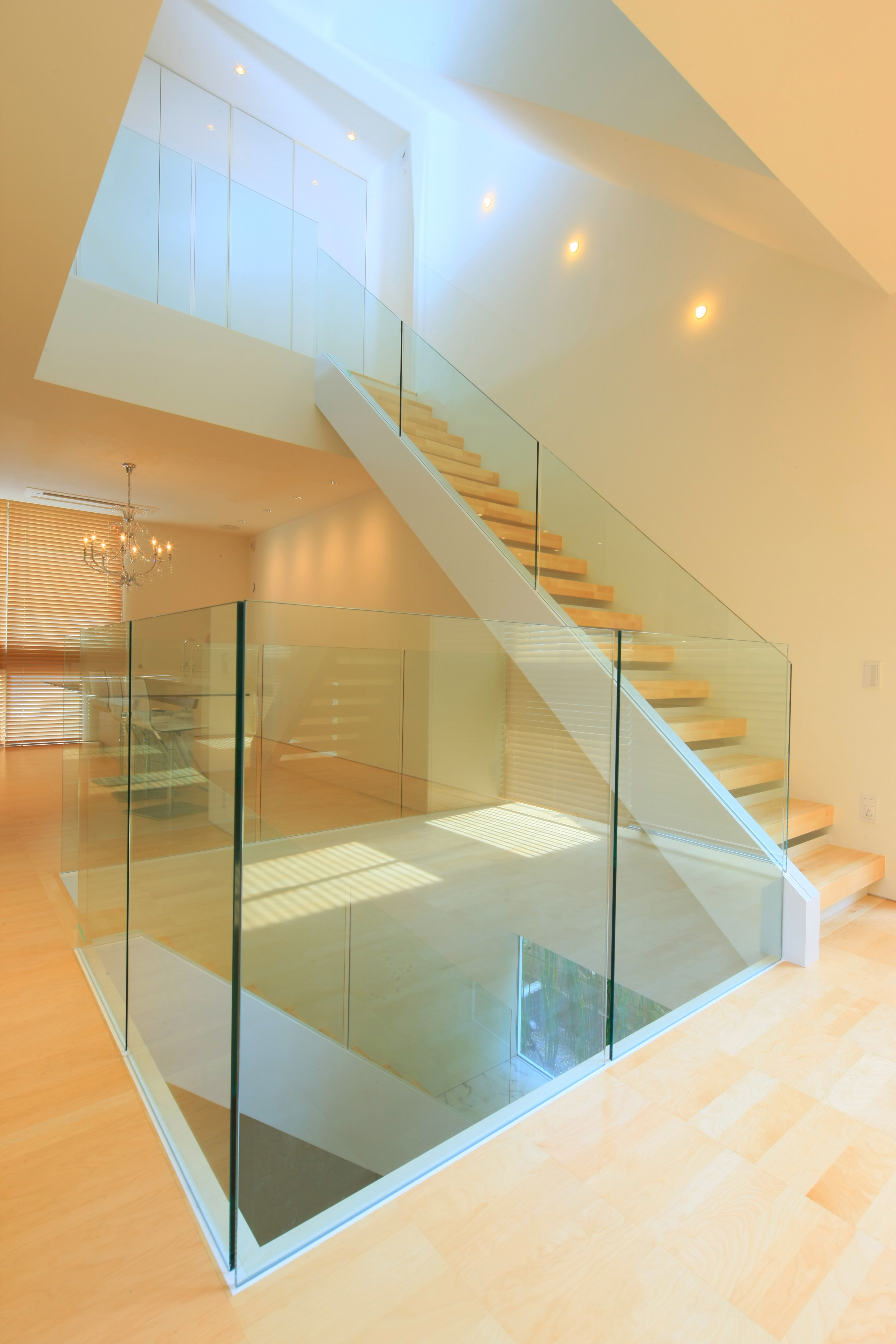- 手すりにはガラスを採用して、美しさと開放性を両立させた階段を実現しています。